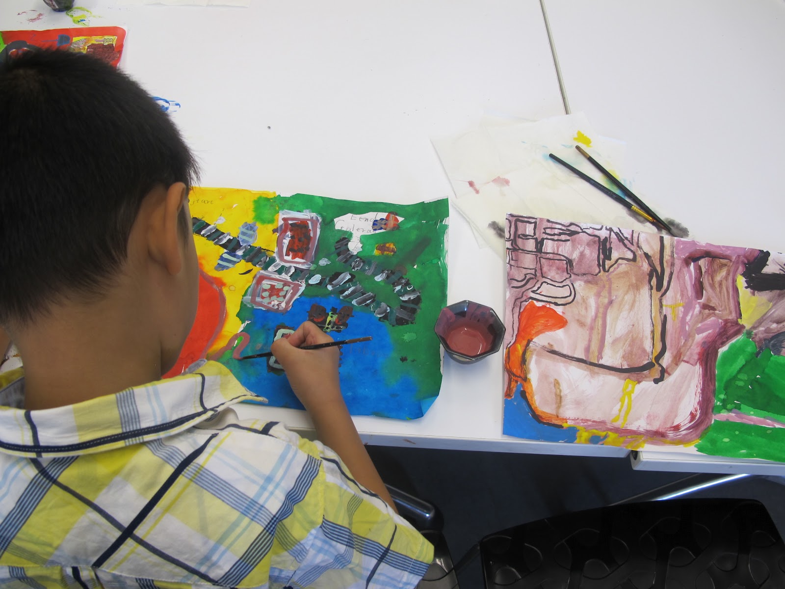 We took this idea of mapping a journey back to the studio where the children began a painting of their journey that morning from home to the Auckland Art Gallery. Check out our next blog for some photos of the children’s paintings as they build up their map using pencil, dye, acrylic paint, ink and pen.
