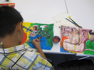 They easily identified with images of the landscape, and concluded that the work seemed to be about a journey through New Zealand. Benny particularly liked that the path across the painting seemed to make the shapes of the North and South Islands.